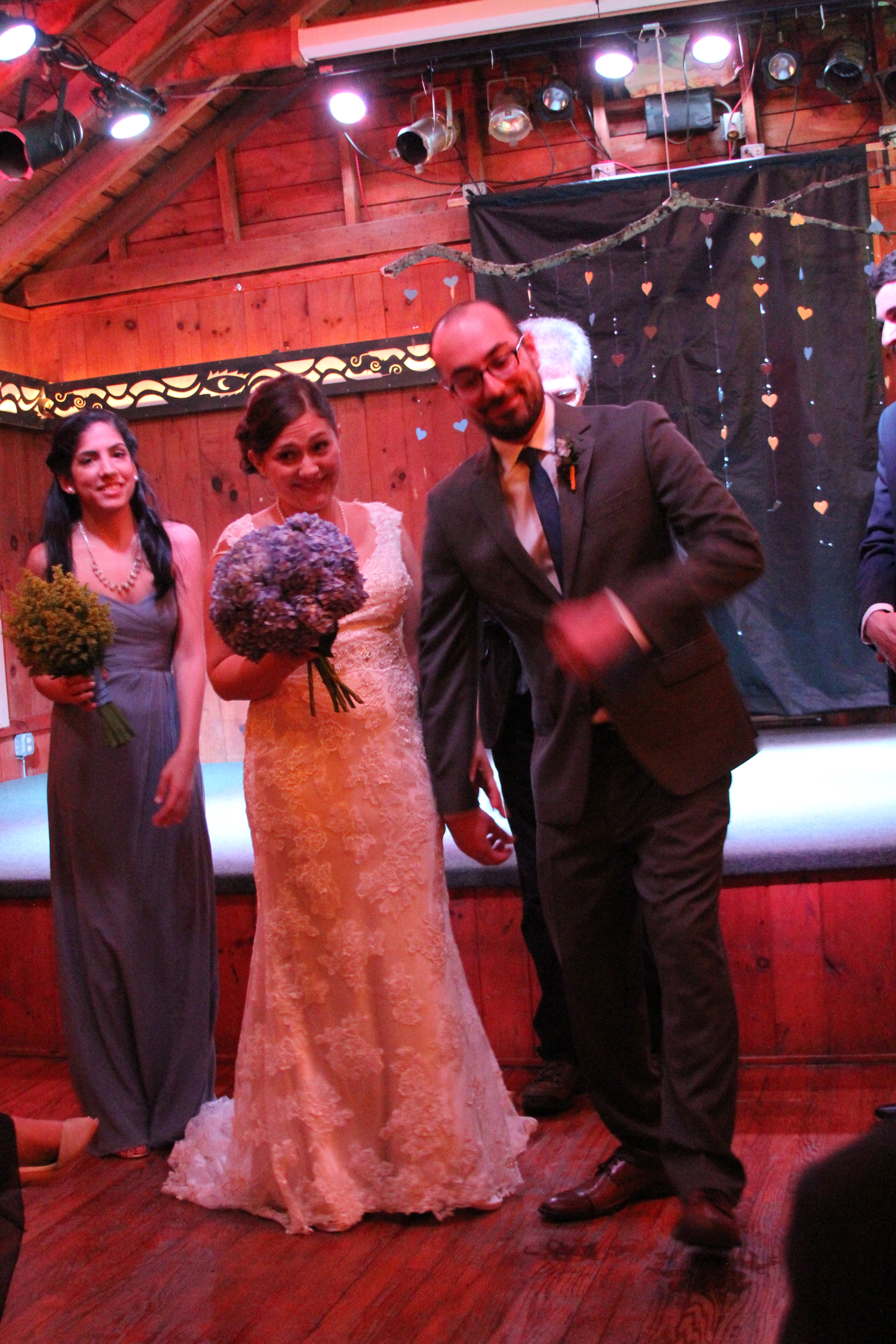 Of course, as is always the case with me, I used the event to practice my photography skills. I think I got a couple of good shots, but I’m really lacking in the right lighting equipment so I’ll have to fix that as soon as possible. In any case, the ceremony was lovely. Jordan and Colette each chose one attendant, so they had the best man and maid-of-honor. They also walked into the wedding ceremony together. I was unclear as to whether the gentleman performing the ceremony was a pastor of some kind or more of a justice of the peace, but either way he did a nice job.
