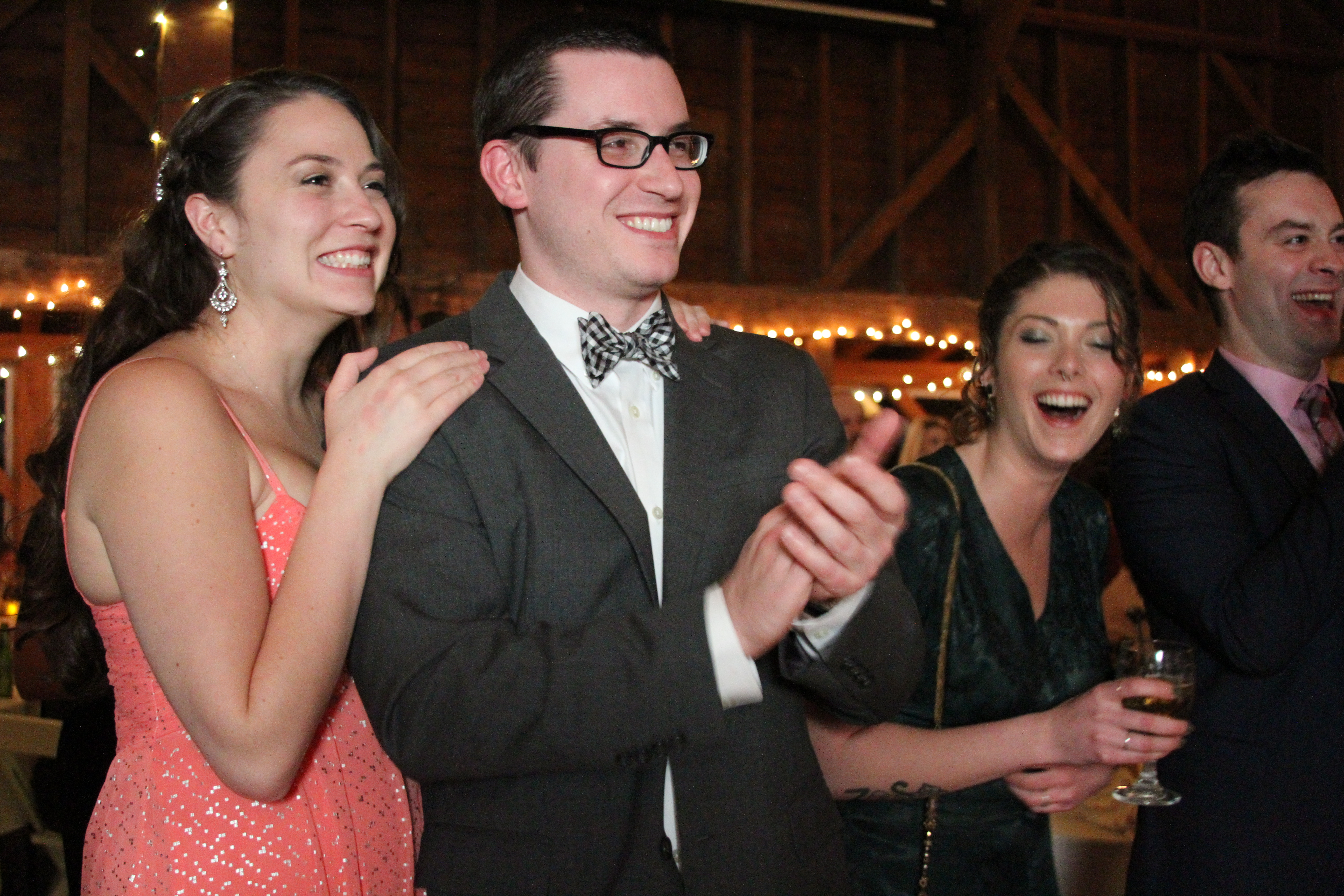 Cocktail hour was now underway. Food, drinks, fun. (How else can you really describe a cocktail hour??) Then it was on to the reception! The reception was really nice – not insanely loud and it definitely did not feel supercrowded, which are the two things that almost immediately make me uncomfortable at events. There was “dj” of sorts, but mostly the music was a playlist on the computer (which I must say seems like the way to go these days). Jordan’s friend’s band also played a few songs. Everyone ate, drank, and laughed.