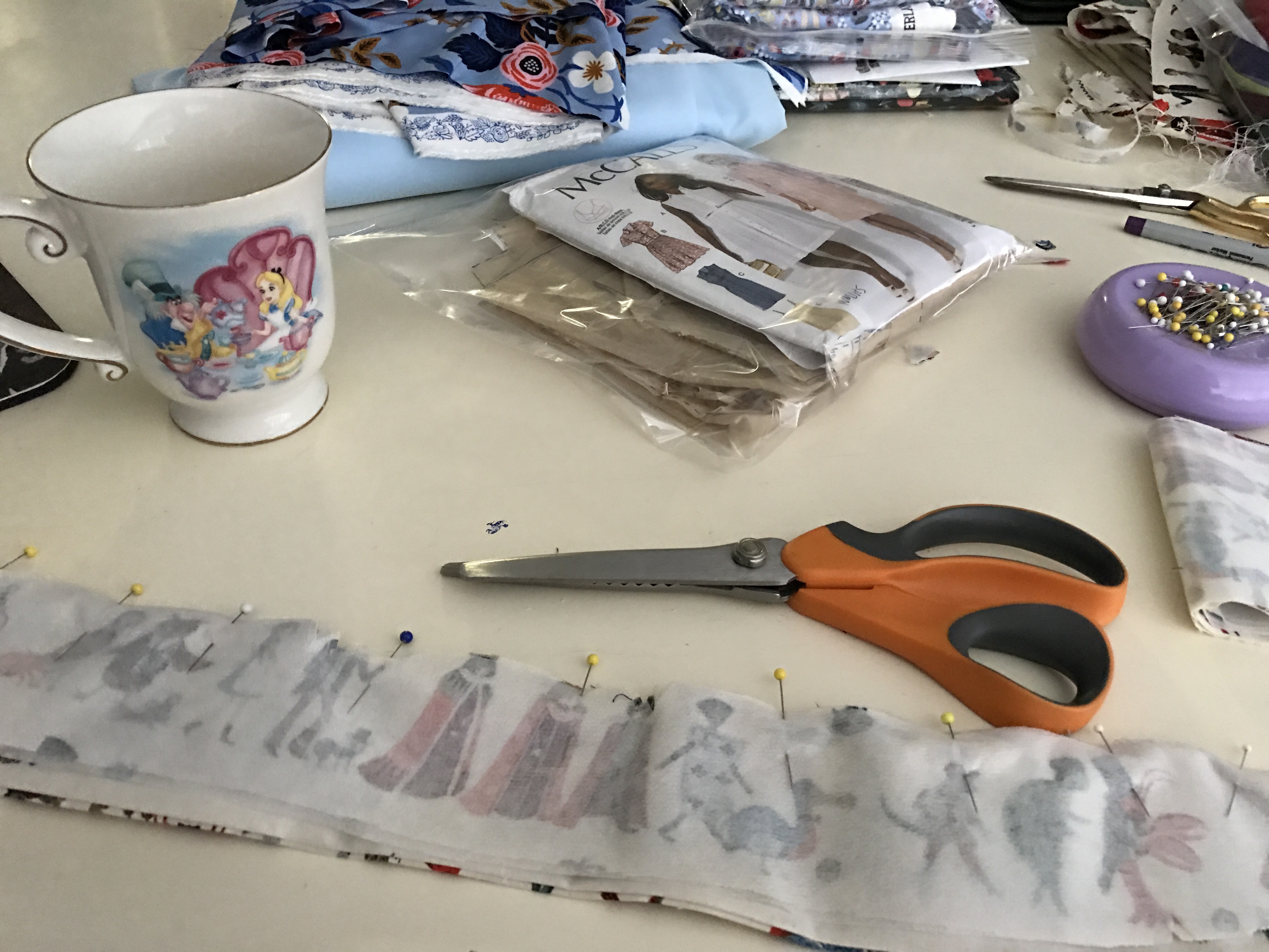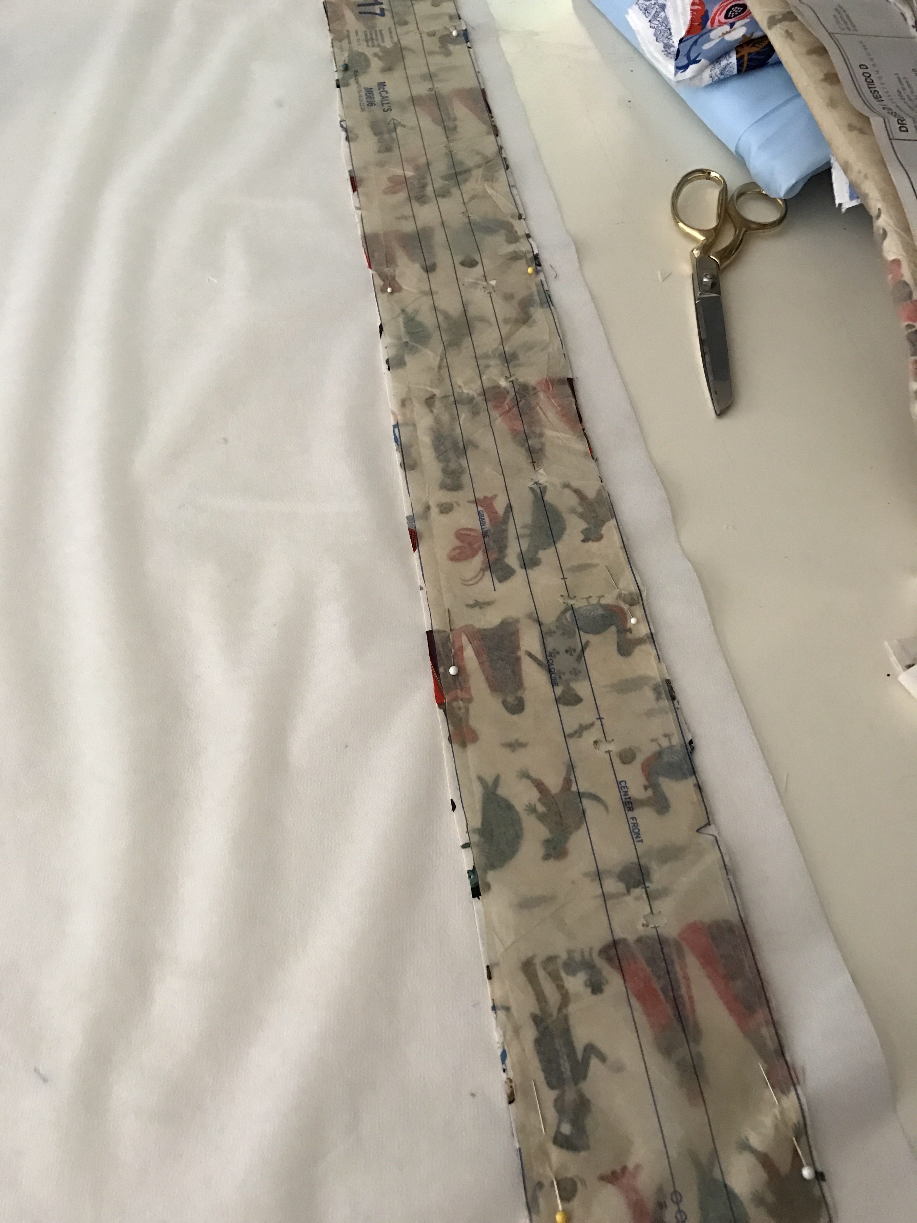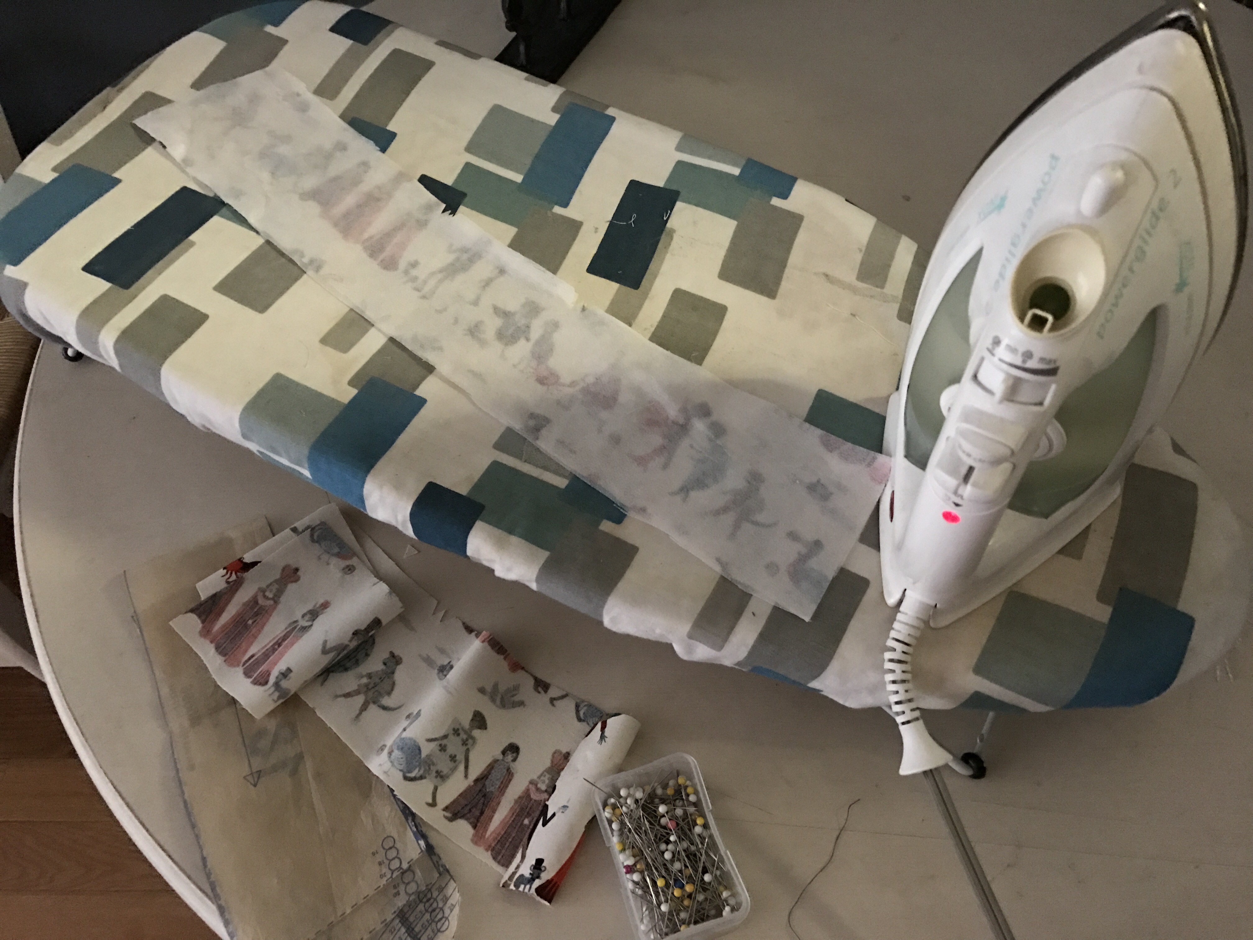Cutting and ironing the interfacing. One happy thing that happened as a result of my small mistake was I discovered I have a giant roll of interfacing in my stash. It was hidden behind my fabric box, having fallen out of sight, and I forgot that I bought it.