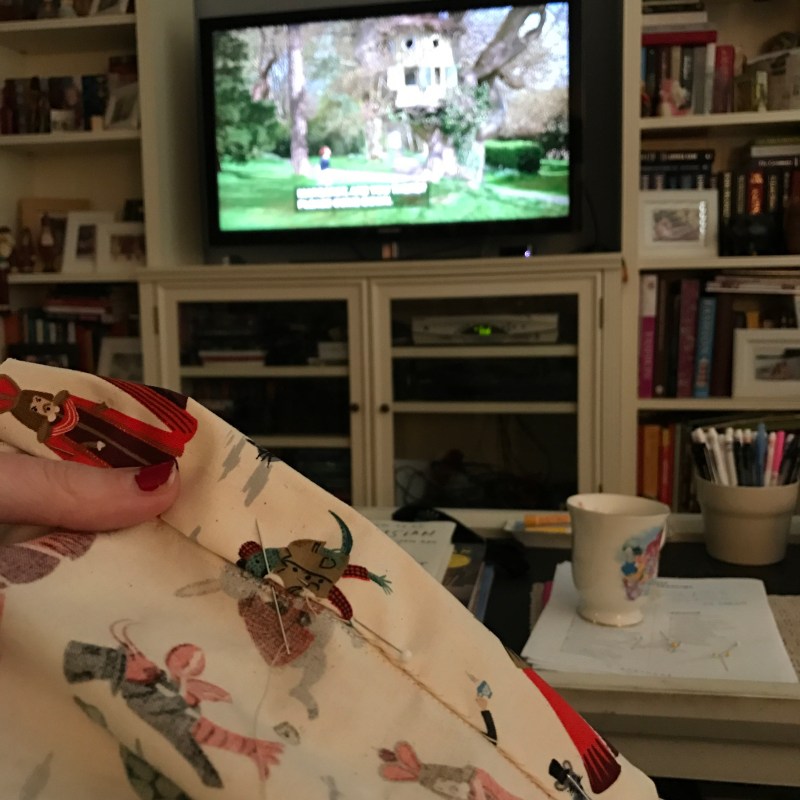 Hand stitching the buttonband into place while watching Sense & Sensibility. The best way to sew is to put on your favorite movies and just let the day take you into your projects.