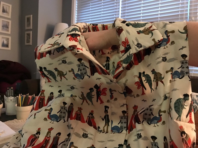 Collar attached and the dress is just about completed and ready! All I have left is the finishing work: buttons, buttonholes and hemming.