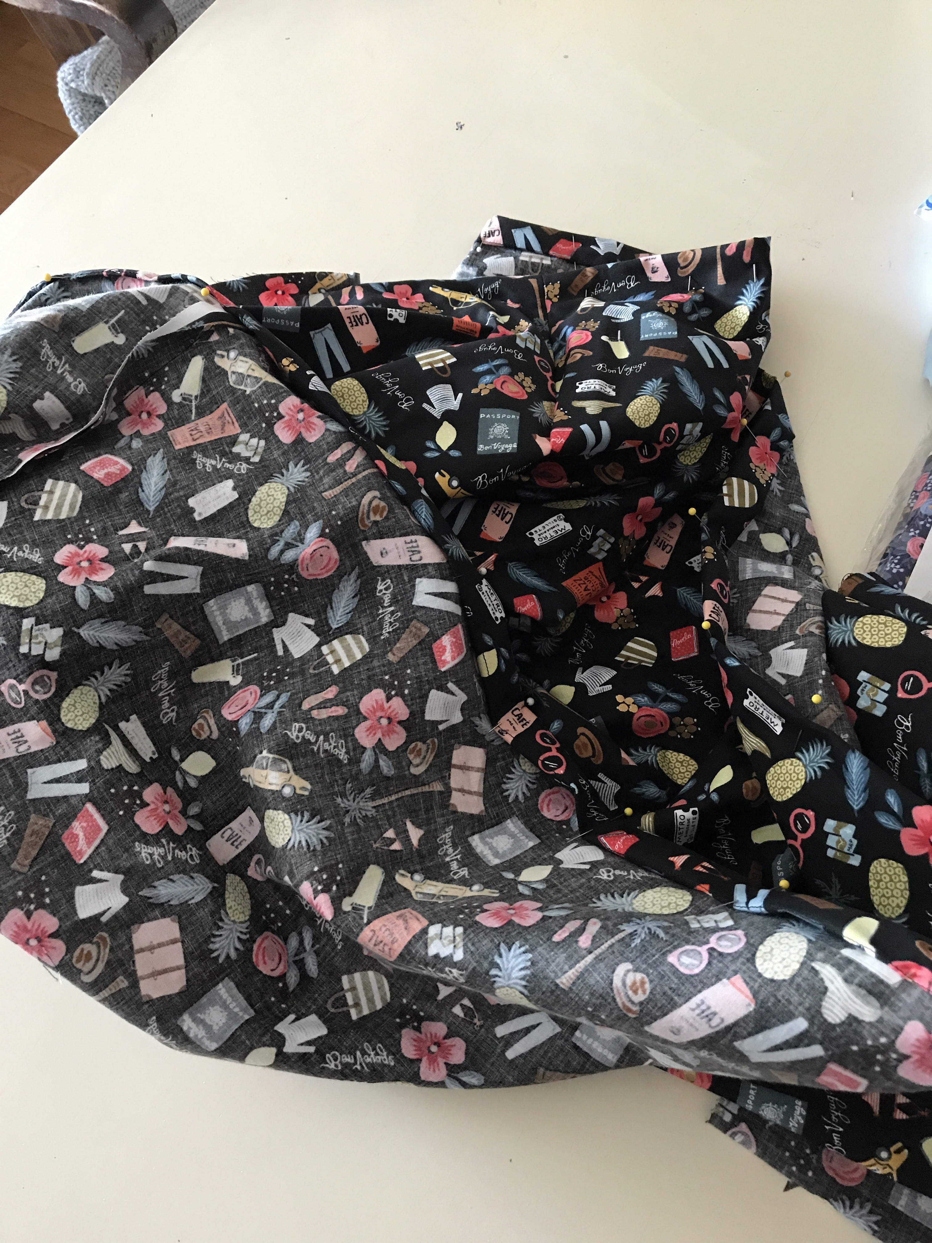 Part one was hemming the bottom of the skirt and putting in the gathering stitches. I decided to do the hem at this point to make life a little easier later.