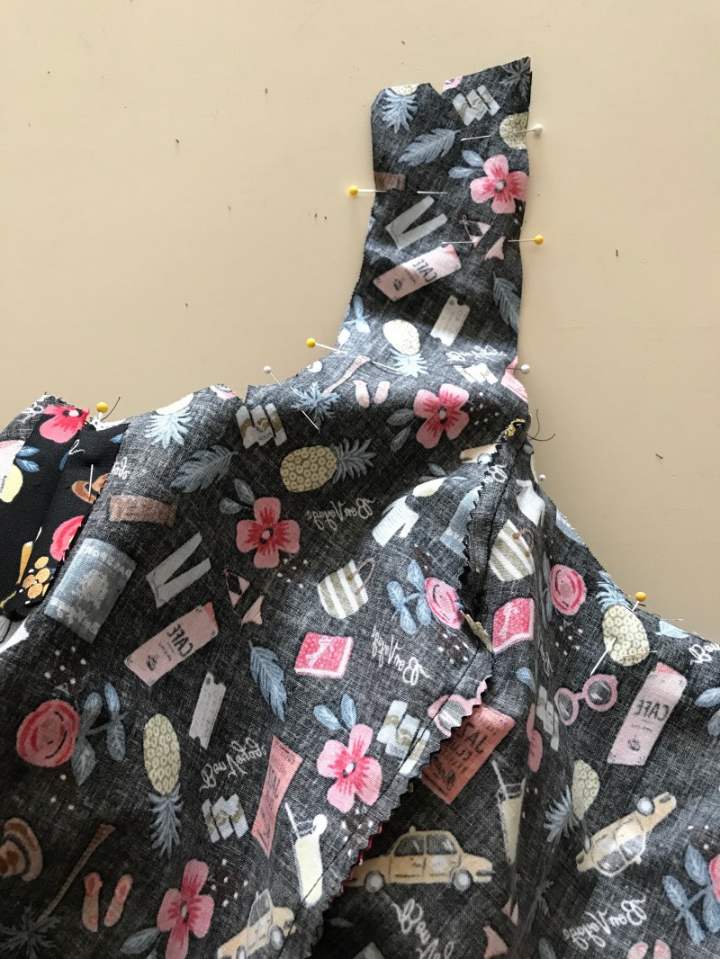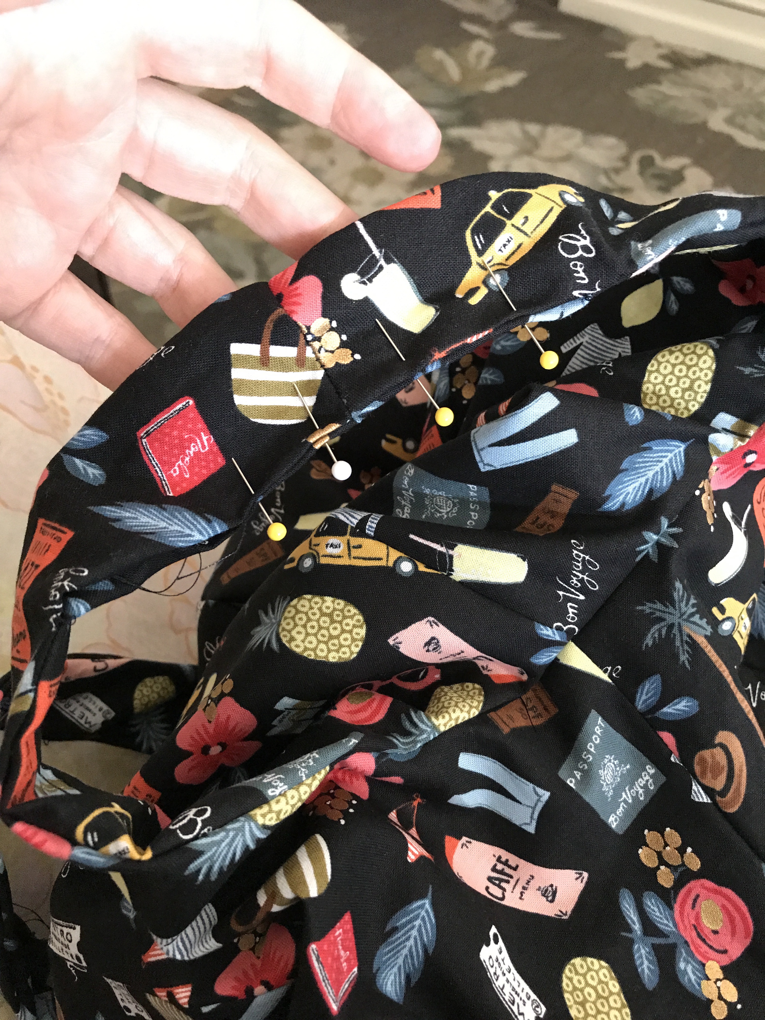 Bodice and skirt attached. This pattern differed from others in that the bodice lining goes in after the skirt is attached.