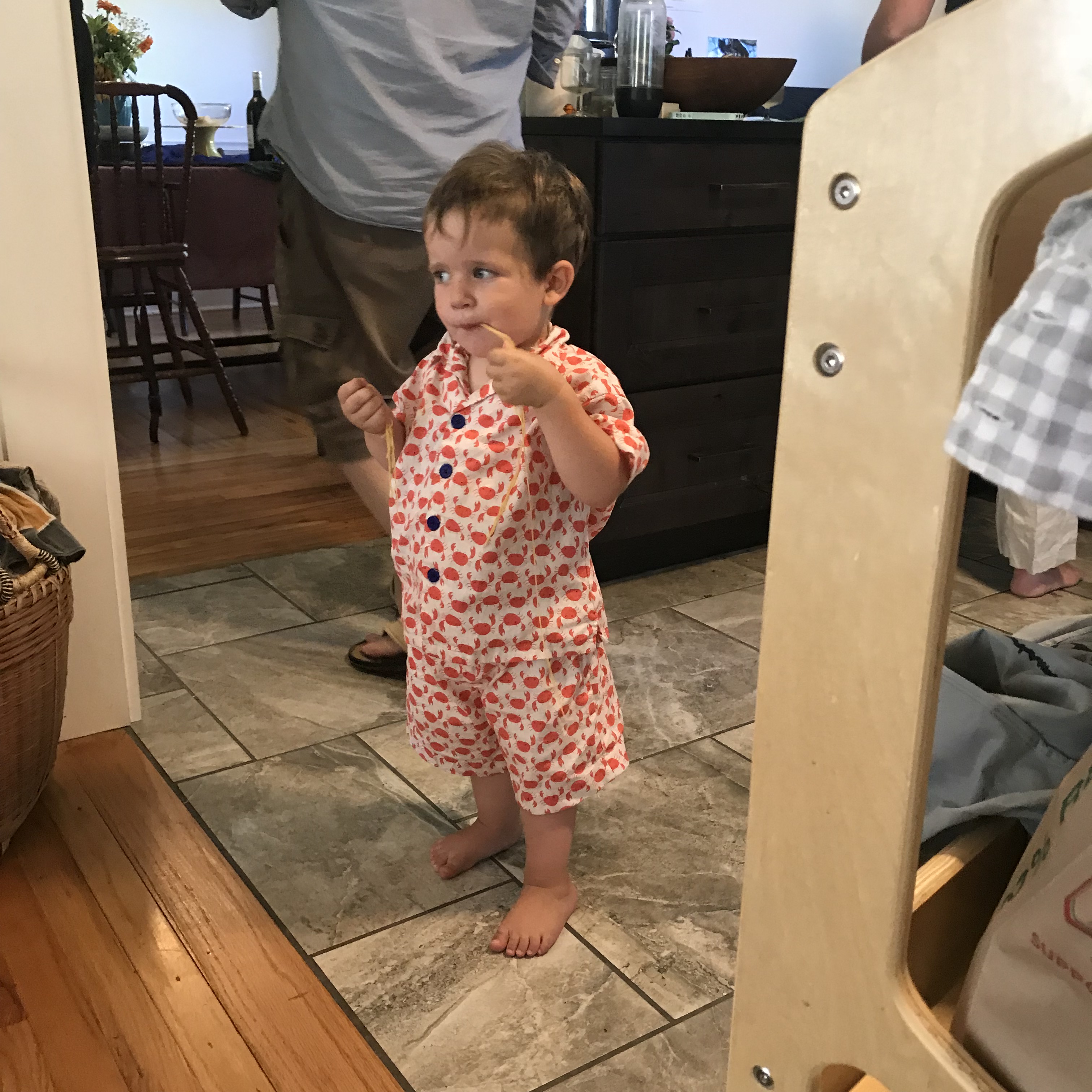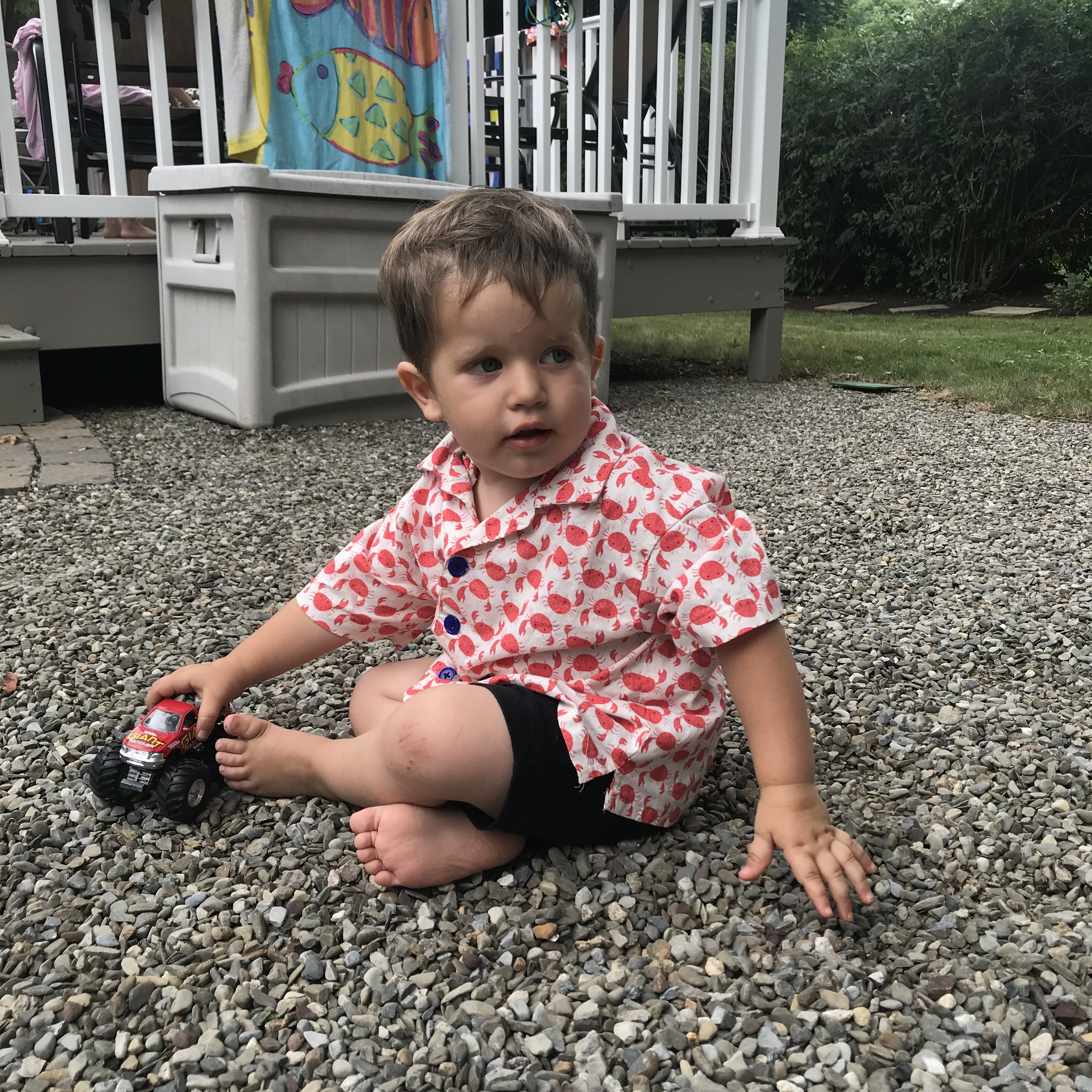 My nephew also got something in the deal: his crab suit! I made him a matching shirt and shorts in the cutest crab print.