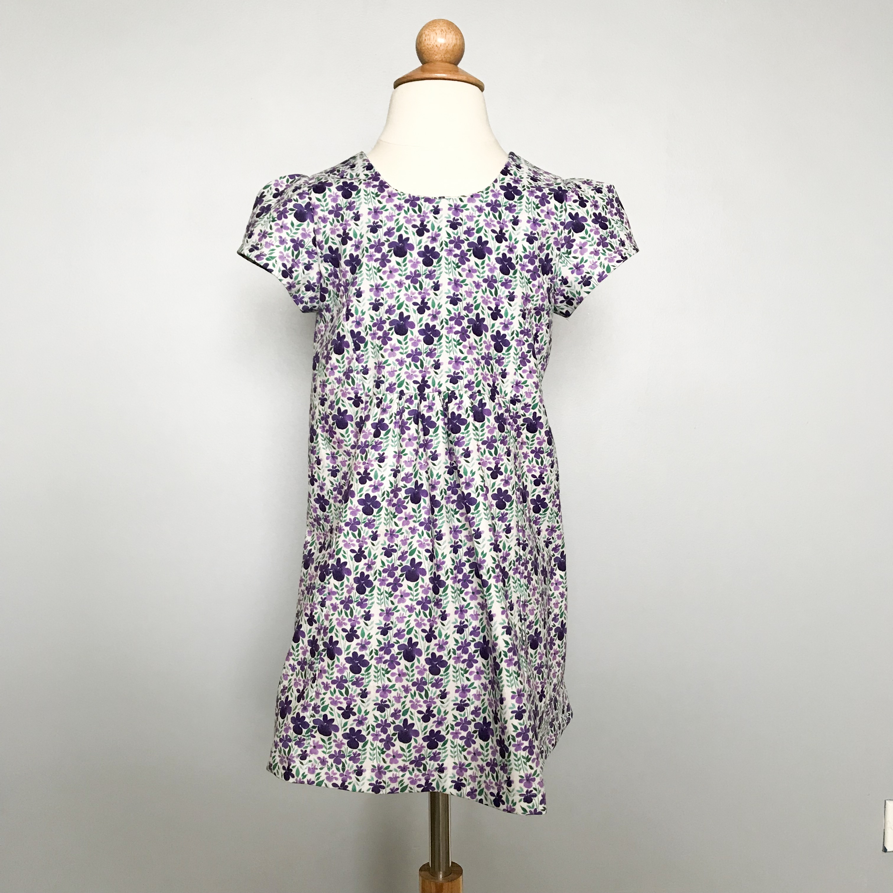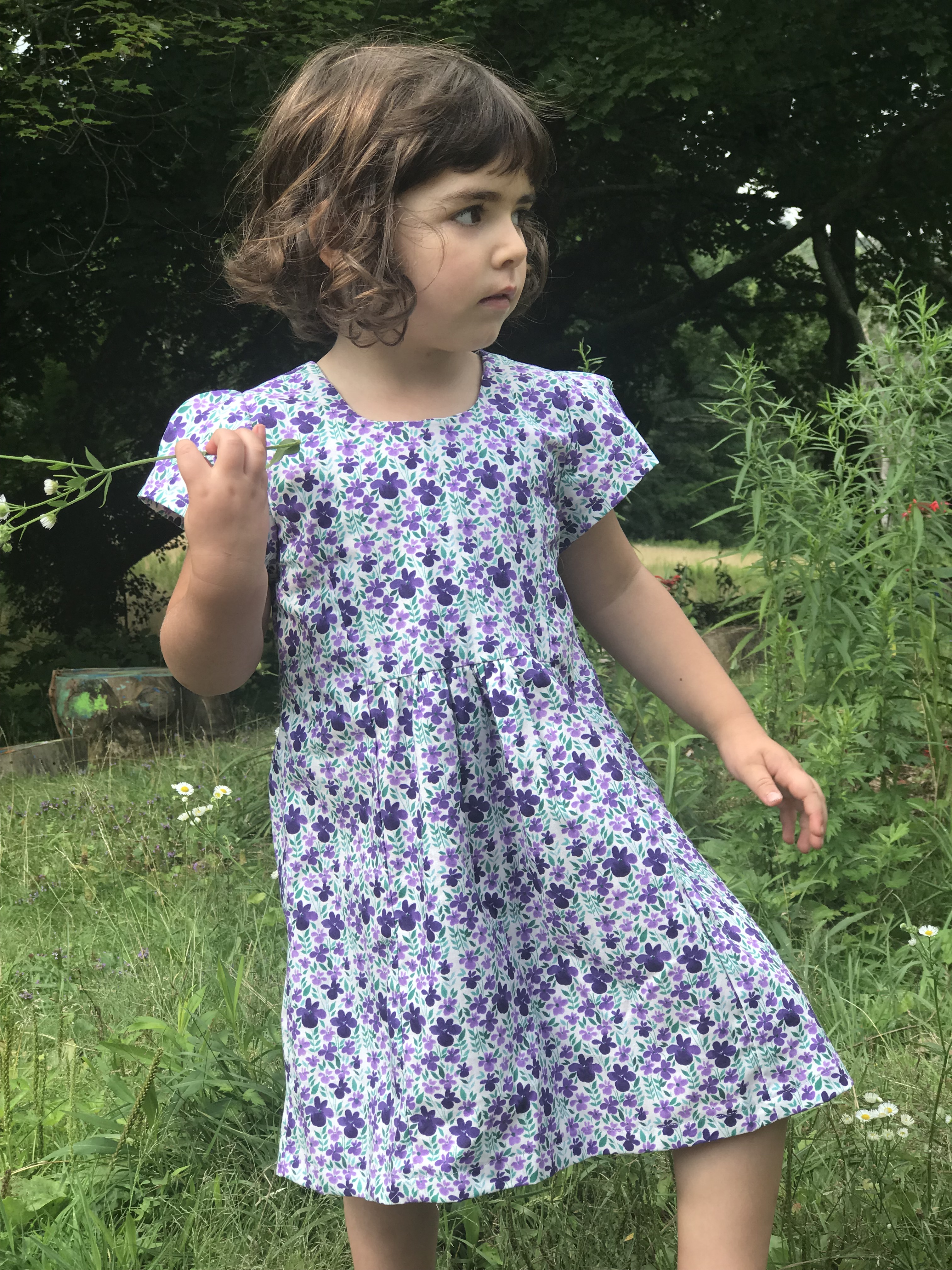 Not all my sewing was for me. My niece loves new dresses and coming with me to Joann Fabrics, so a few weeks ago we headed over there and bought this pretty purple floral print, as well as a pattern that had a matching doll version. I made them some matching dresses, and we had a little photoshoot. This was McCall Pattern 7233.