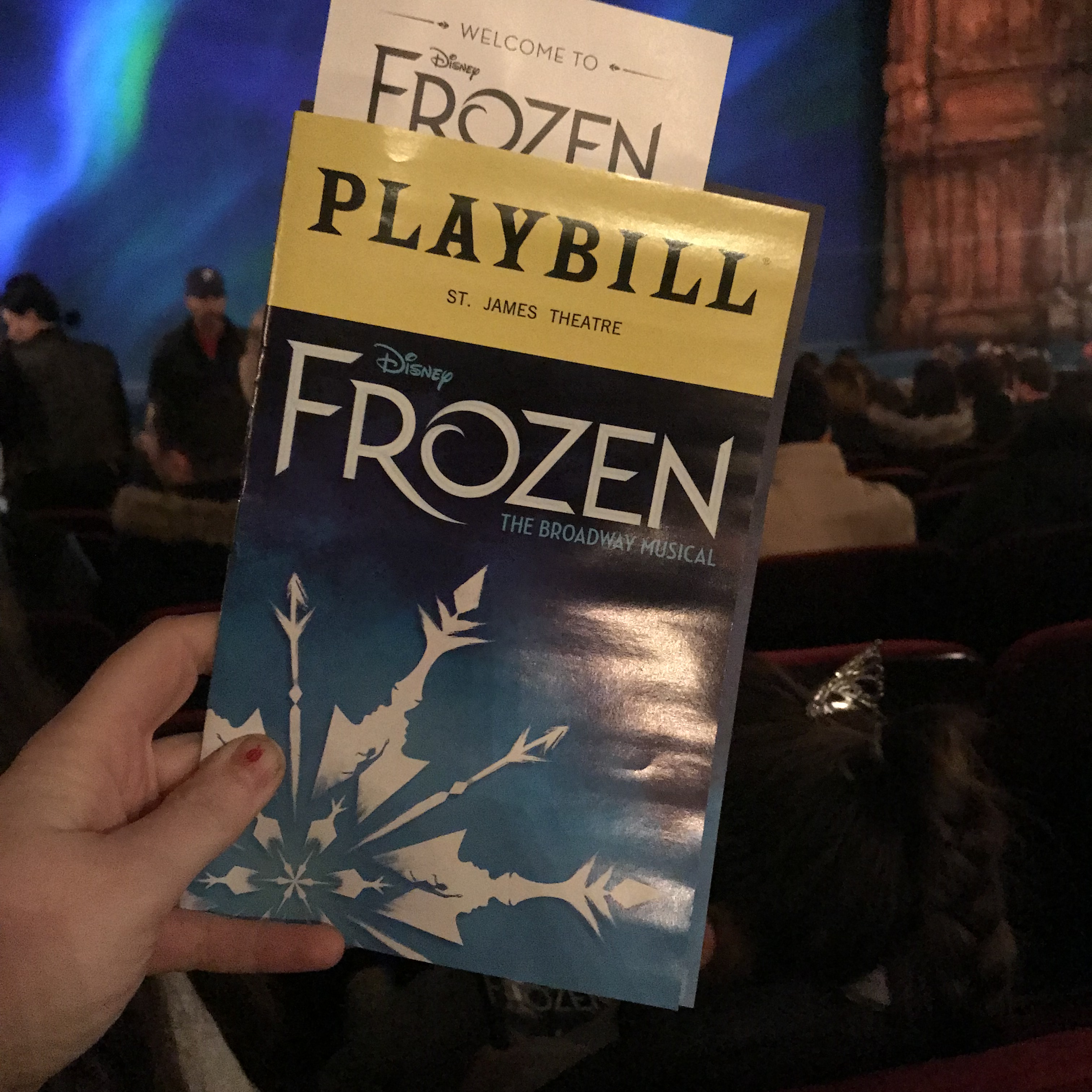 Last weekend, we announced our 2020 musical: Frozen, Jr! Of course, everyone involved is extremely excited, despite the fact that we don’t start auditions for another six months. However, there’s plenty of “pre-production” to do that not many people realize goes into these shows, and we’re right in the thick of it. We are also lucky enough that we are in Brooklyn and that Frozen is currently running on Broadway. This meant that I could take a little research trip.