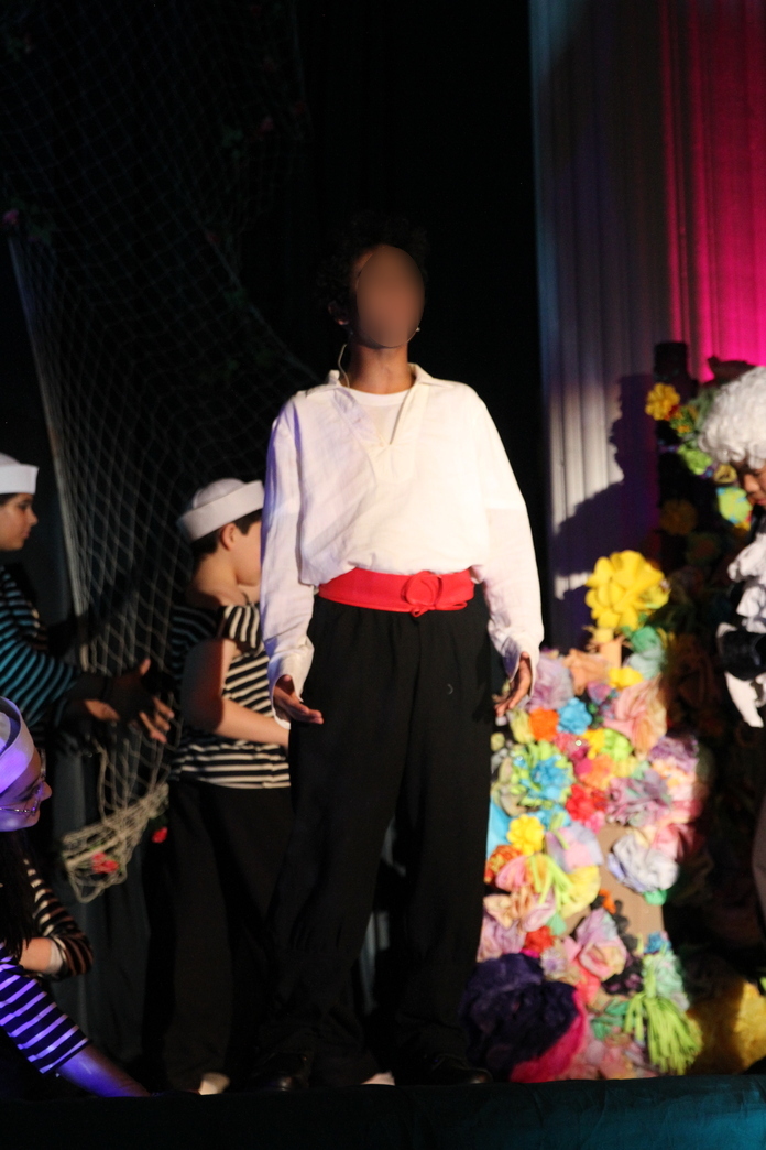I showed off the fish heads in the last post, but most of the other characters involved with “Under the Sea” got a store-bought costume. Because they were going to be in the background of a large production number and not wear the costume elsewhere in the show, I decided it would be okay to purchase the jellyfish, starfish and sting way costumes. They blended in seamlessly with the rest of the crew. However, once again I don’t have great pictures of those costumes during the show, as the children in them were often in the background and blocked.