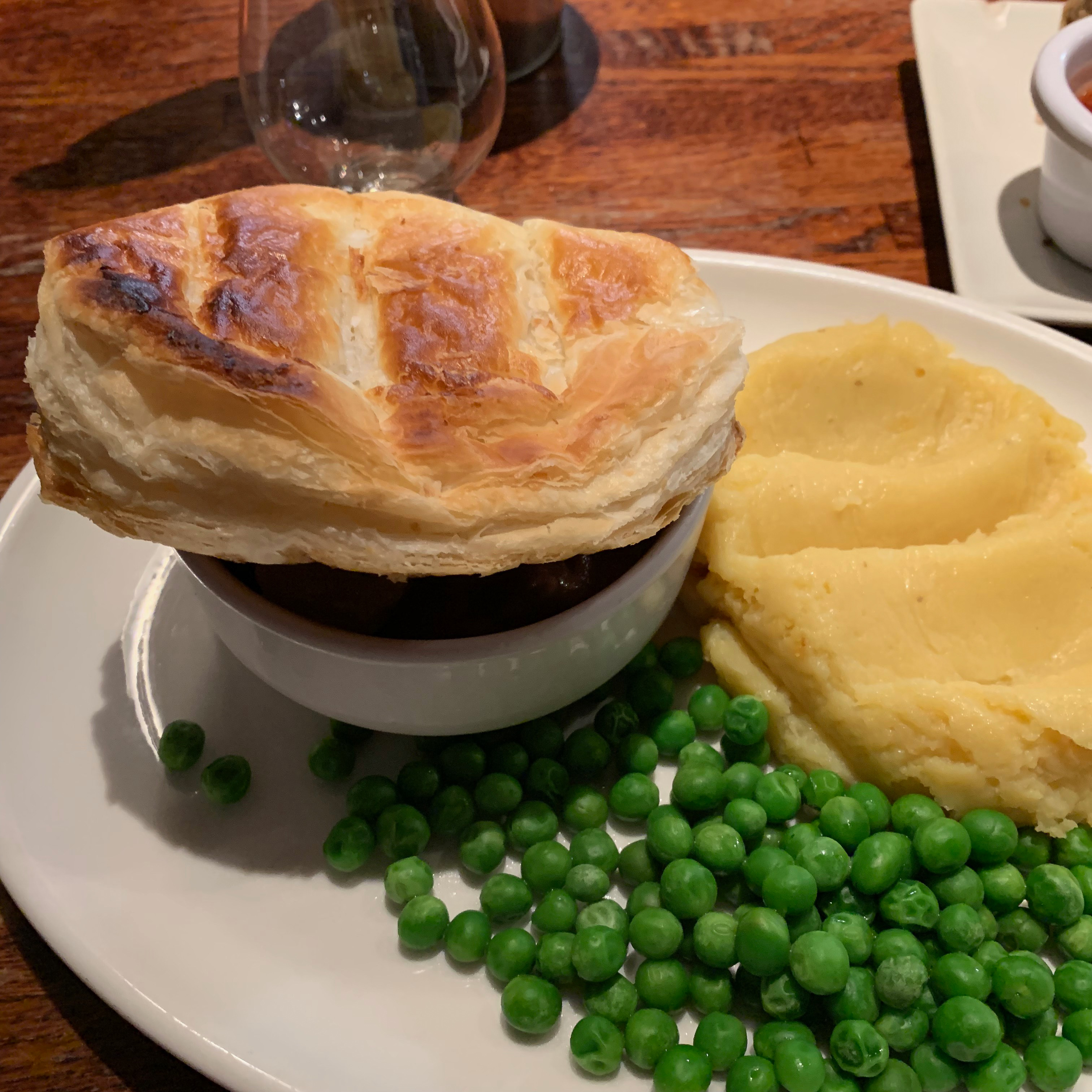 From the Royal Mile, we walked back to the Air BnB. It wasn’t late at this point, but we were both feeling the travel weariness and wanted to get something to eat. We ended up at the Rose & Crown, the pub across the street from the apartment, where I had my first Scotch of the trip (of course I chose Lagavulin!) and tried some haggis! (Spoiler, it’s actually really good.) I also got the pub’s last steak and ale pie of the day. Scotland is full of these great comfort foods.
