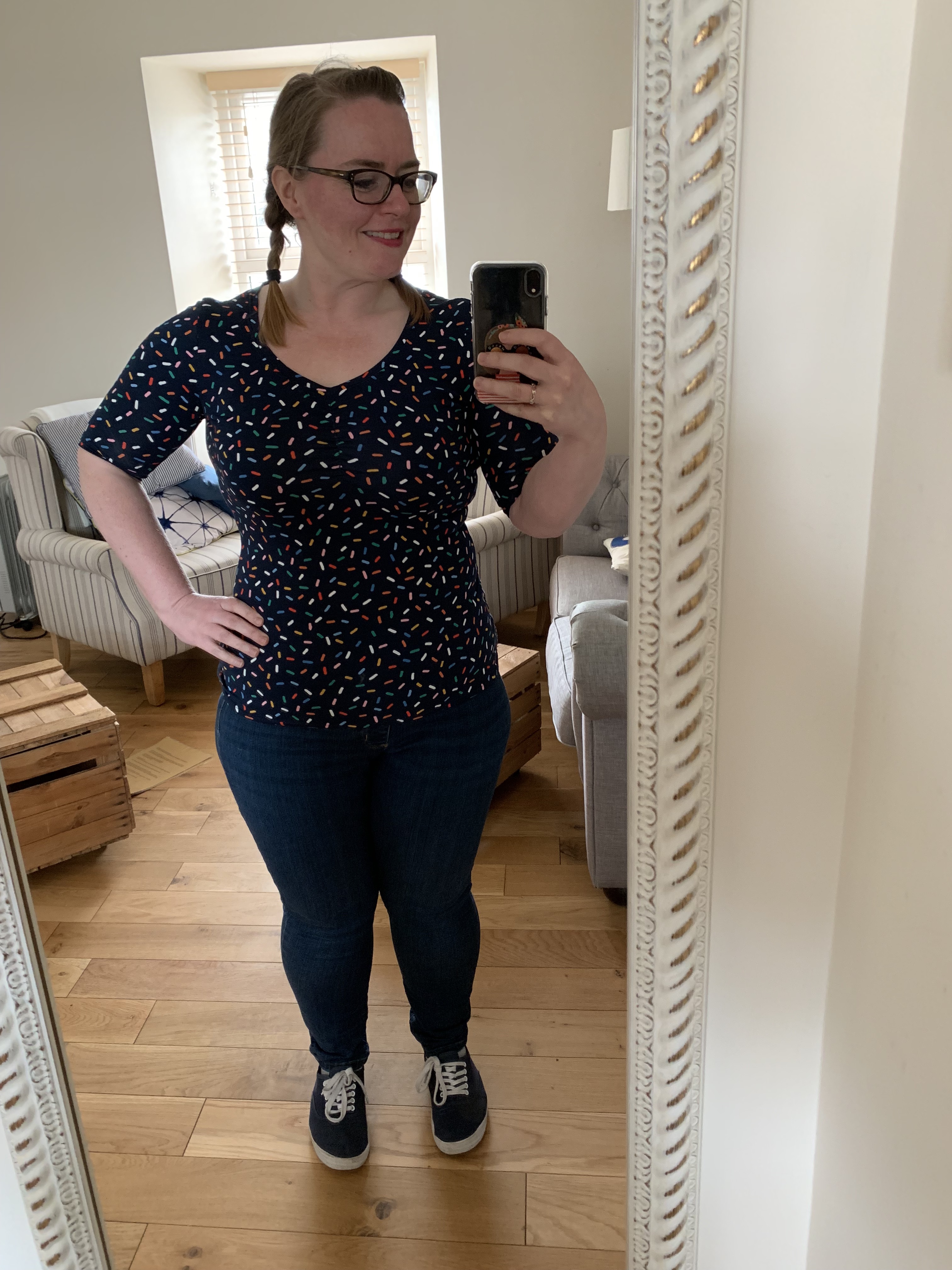 Technically if I never made another dress in my life, I would probably be all set. (But we all know that’s not going to happen!) So I decided I should make myself another new shirt. As I had such great results with my last Tilly and the Buttons Agnes Shirt, I made another one. Fabric was from the Sew Over It Fabric Club and is an adorable sprinkle print. I made a shorter sleeved Agnes. Its super cute, and I plan to get a lot of wear out of it. I’d love to make a circle skirt to wear with it at some point. I’m also considering making a sleeveless Zadie, which I suppose would technically be a pattern hack since that’s not an option with it, but I think it would make a great summer tank.