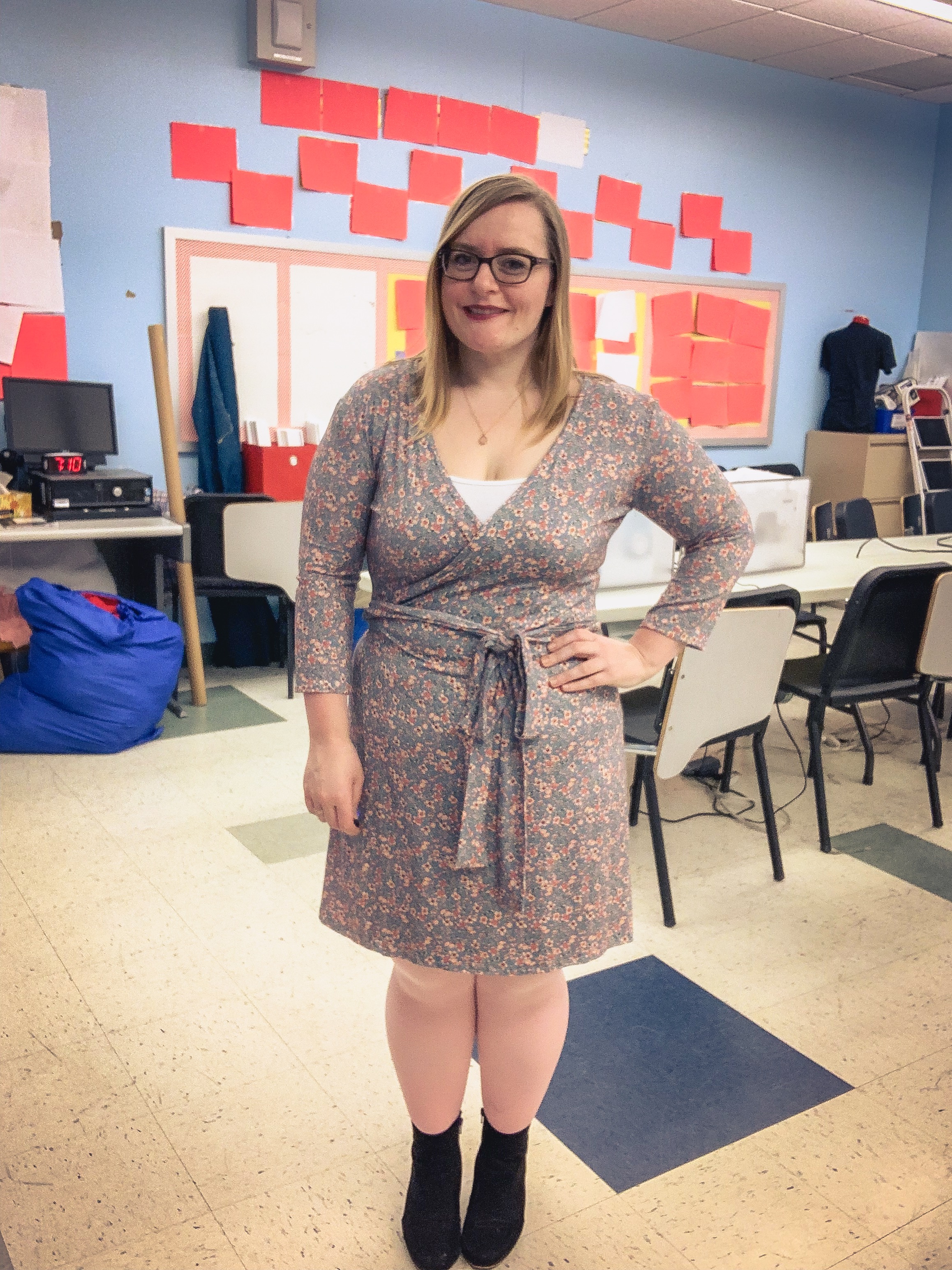Finally, we have my new Ultimate Wrap Dress. This one did not end up coming on the trip. This dress was made in a viscose jersey from Sew Over It (I mean, where else… my blog is pretty much just a constant giant advertisement for them!). This was not my favorite make of the month, and I don’t really know why it didn’t turn out the way I wanted it to. Perhaps the jersey was just a little bit too light, or maybe I just don’t like the way I styled the dress. Either way, I’m going to hold on to it and see how I want to style it next time. It’s also possible, the day I wore it, I just wasn’t feeling like my best self and am blaming that on the dress. Who knows?