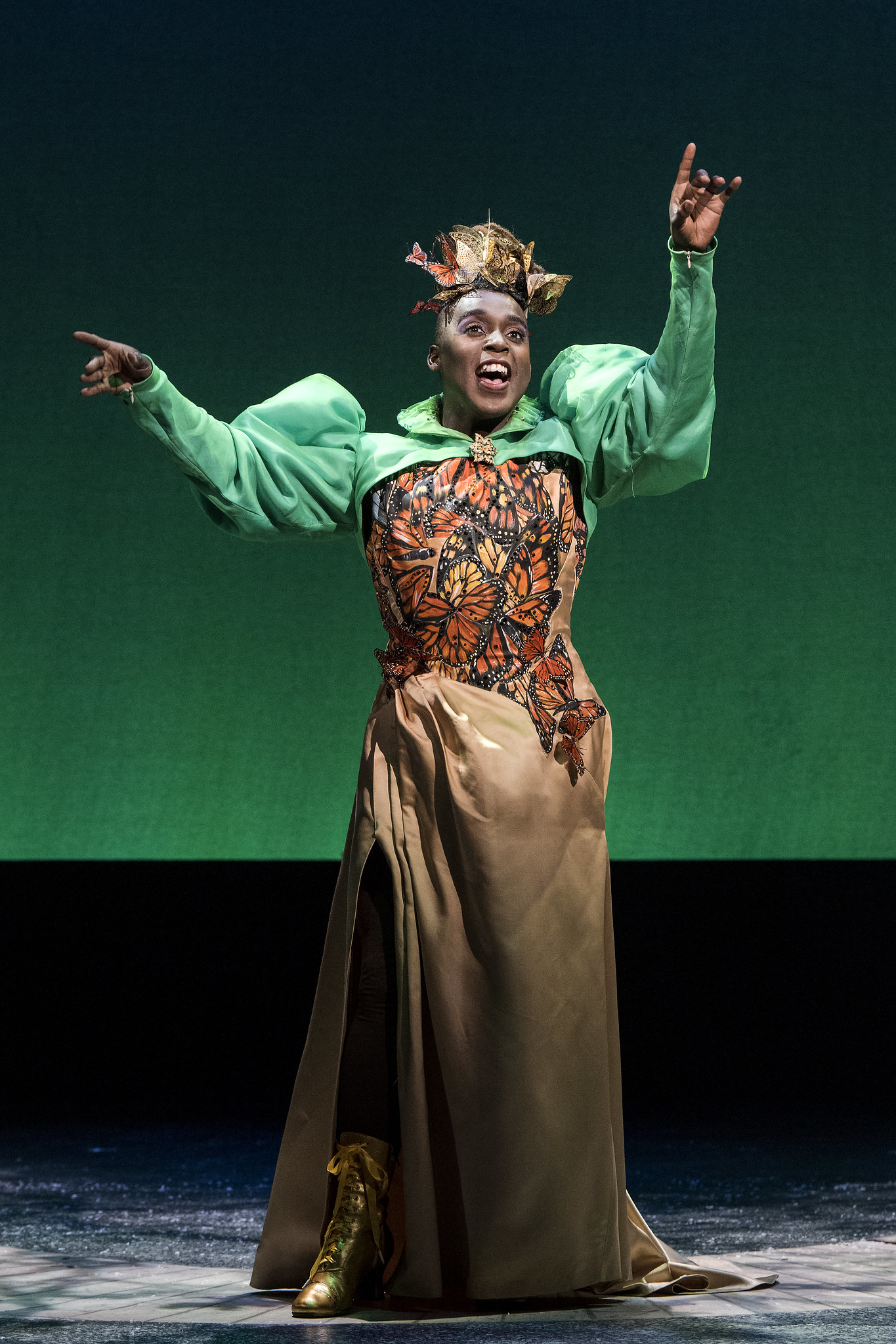 My only complaint about the costumes might be the Witch, and it’s not a full complaint. I understand that the Witch needs to be over the top, and even more so in this version with a man playing the role. I liked what the costume designer did with incorporating butterflies onto all the Witch’s clothing, as she goes through a massive transformation at the end of Act One. However, there were also some odd choices. For example, the bright green jacket the Witch wears with her dress throughout act two just doesn’t go, for lack of a better way to describe it. I think I wouldn’t have an issue with it if it was just a different color, but I don’t know why!