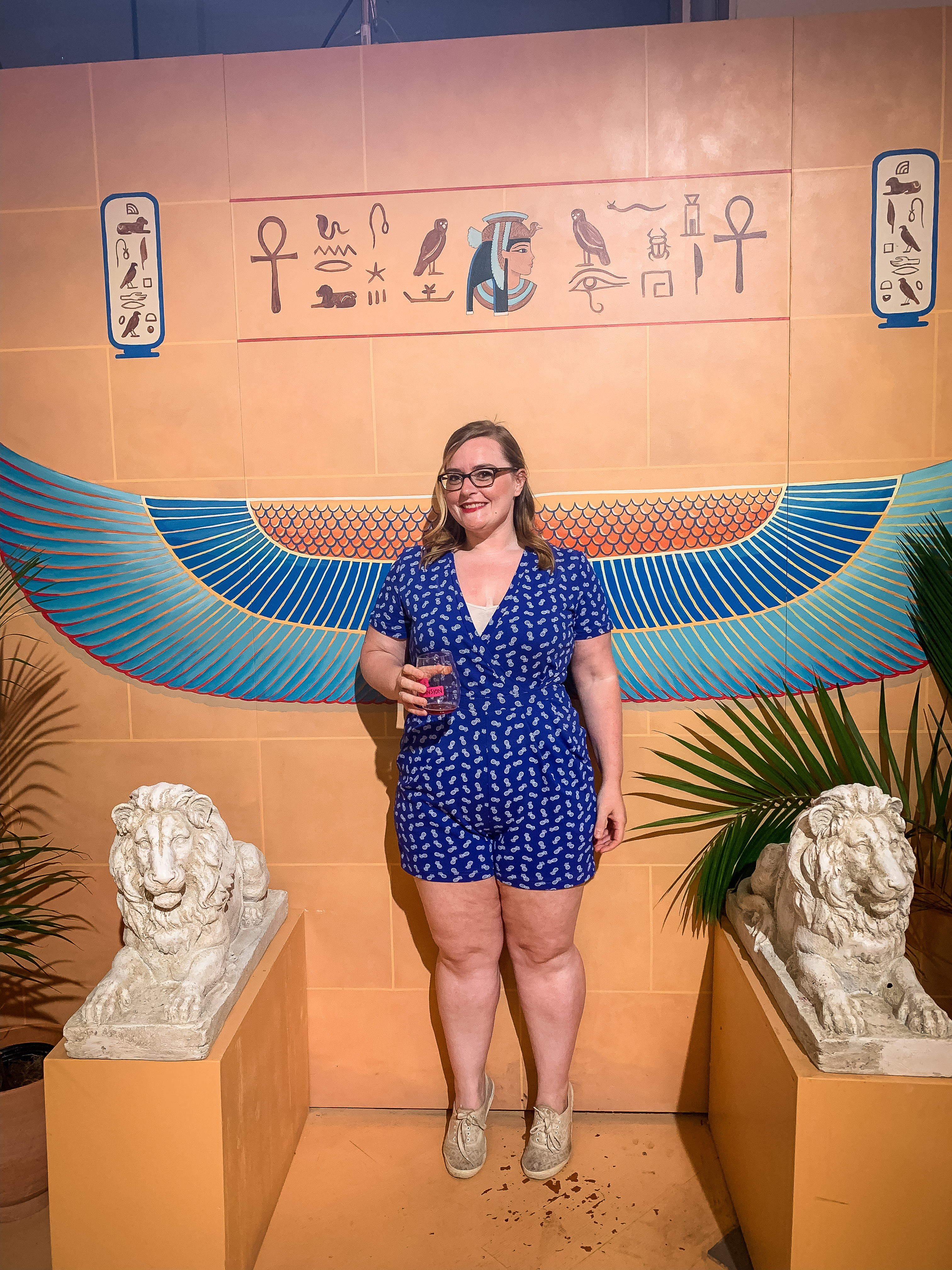 The first themed room was the Egypt Room. As you enter, you get an introduction to Cleopatra, and can take your picture on various loungers and chairs. Following that you go into what I want to call the Sensory Room. It was painted all trippy and had some things you could spin on the walls (not sure what those were for, to be completely honest). From there, you enter a room with a optical illusion painted on the floor, made to look like you are standing on a dock over a lake.