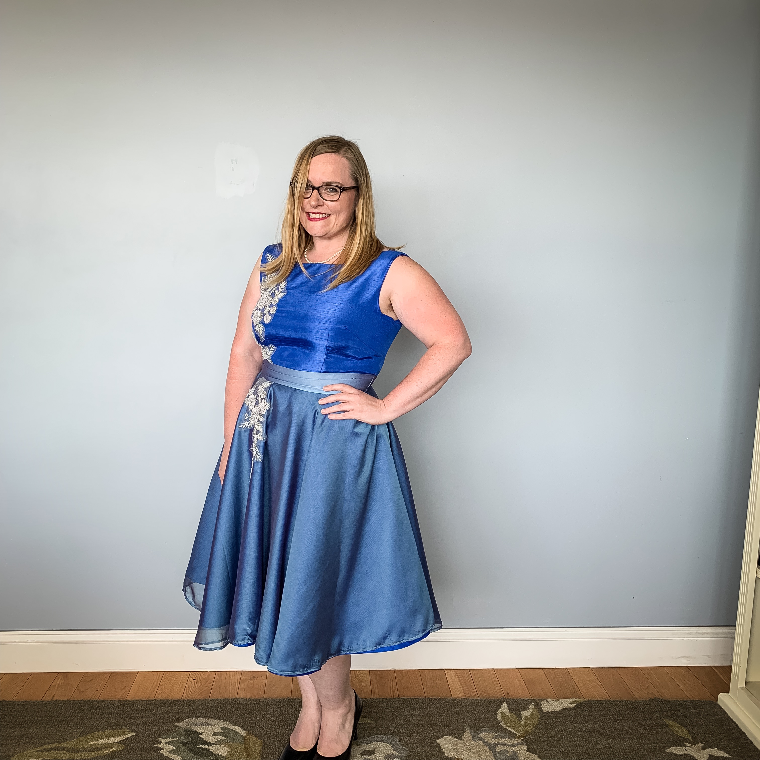 First up was my entry for the Made Like Maisel contest on Instagram. I used the Sew Over It London Betty Dress to recreate a blue dress that Midge wears in the Catskills. I raised the back neckline of the pattern (though I somehow neglected to take photos of the back), and self drafted the sash and sewed on the appliqués. I ended up as a finalist in the contest, ultimately taking third place!