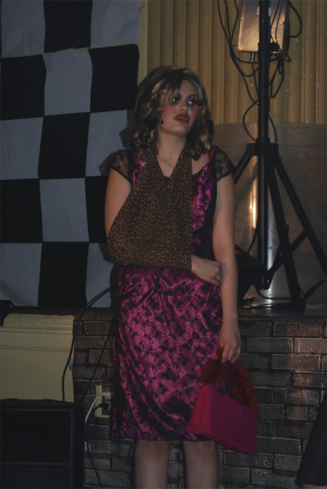 The doo-wop girls are a juxtaposition of skid row poor and glamorous girl band. They appear in both outfits at various parts of the show. Their “poor” outfits were easy: a simple circle skirt and a blouse (purchased from a school uniform storm and modified to have velcro for ease of getting in and out). However, they appear in a multitude of scenes in which they need to be glamorous, and of course I wanted them to have different costumes for these scenes.