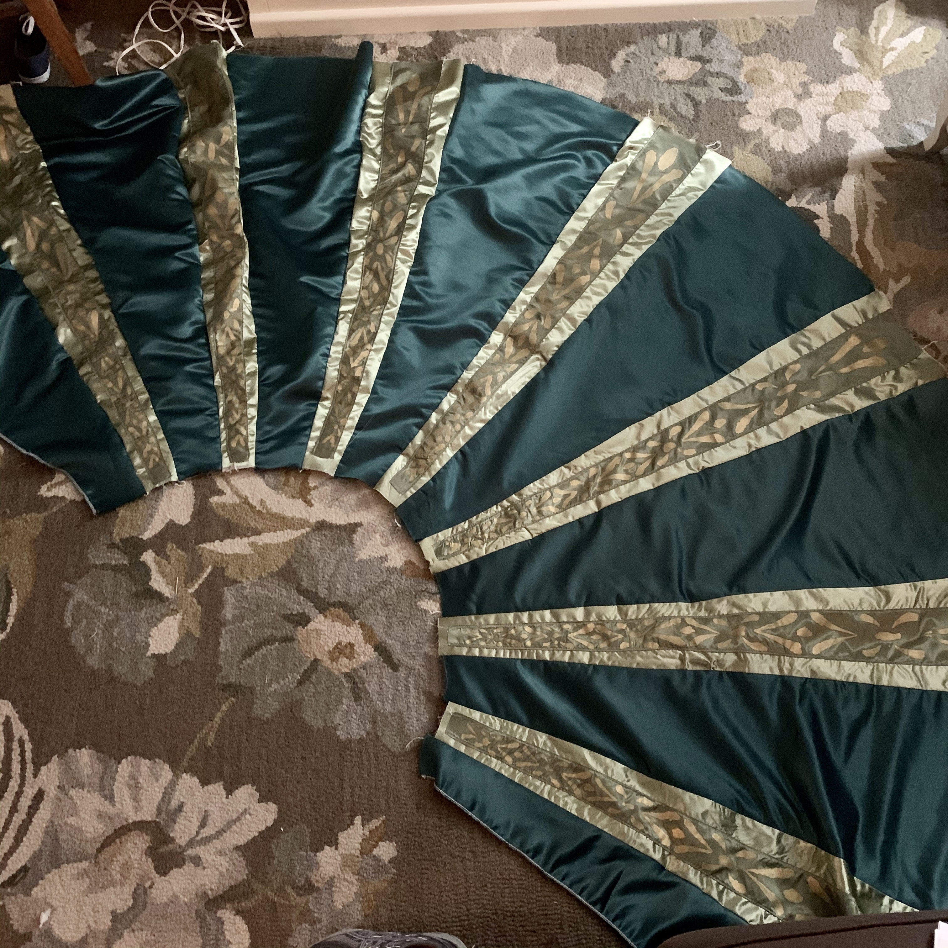 An ongoing project has been Anna’s coronation dress. This is an insanely time consuming project and we have to make two of them. The above shot is of one of the skirts when it was just about fully paneled. There’s more work to do but we’ve jumped over a bunch of hurdles at this point.