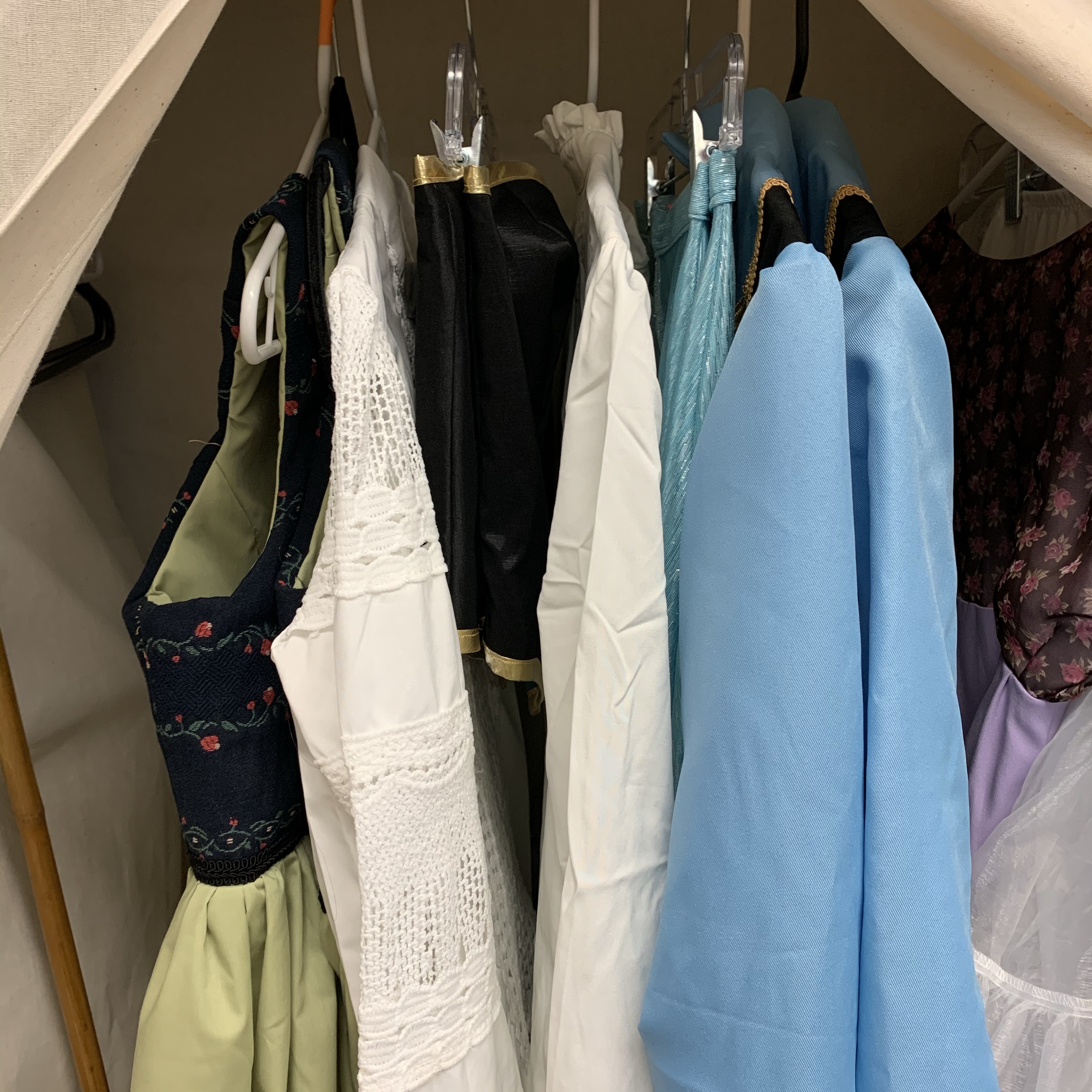 I love how my costume rack is beginning to fill up! This picture was taken at the beginning of November but now it is jam packed. I am so happy to have gotten mostly over the hurdle of the village: our ensemble is quite large and they needed a lot of costumes. We’re almost there.
