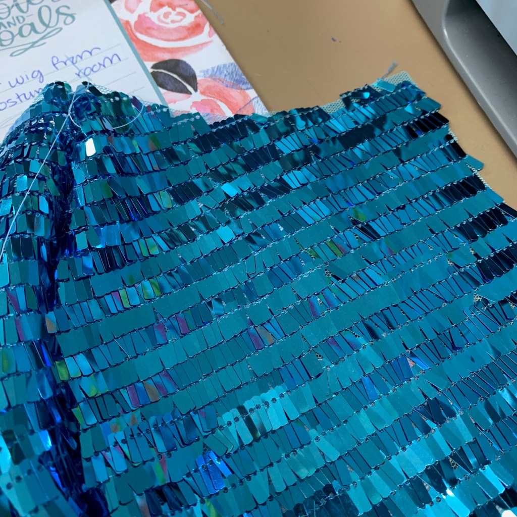 Now, if you took a break from reading to watch the video, you’ll have seen the blue dress. This dress was another project that started in one iteration, but completely transformed over time. Originally, I was planning this super sequined, gaudy thing, but as I got further in the process of making it, I got more and more unsure. Finally, I ended up buying completely different fabric, and going in another direction entirely.