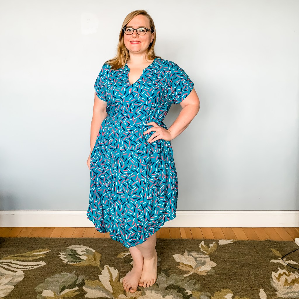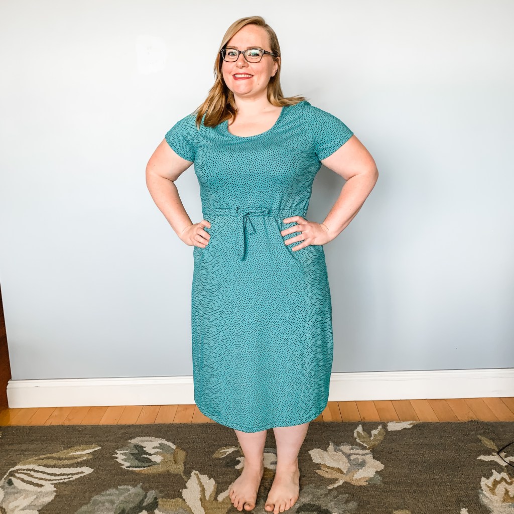 First up we have a new Penny Dress from Sew Over It. This is a repeat make, as I have two other Pennys in my wardrobe rotation. I thought this one was going to turn out disastrous as I was away from my overlock machine and this fabric was prone to fraying, but I managed to make it work with a zigzag stitch. Then I was worried that the hem would be crazy because after it hung it was all out of shape and I have to level it off, which is not one of my stronger skills. However, I got it hemmed and I love it! This one was easy to hide the quarantine weight in, as I didn’t make the elastic as tight as I normally do, and I can take it in easily once the weight comes off.