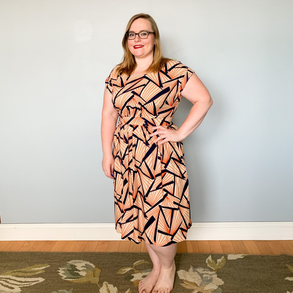 However, I did make this Sew Over It Marguerite dress using the art-deco inspired fabric I got from Blackbird Fabrics weeks ago (sadly now out of stock). My initial thought had been to do a sundress, but I ended up wanting to show off more of the print, and the lines on Marguerite are perfect for that! I really like how it came out.