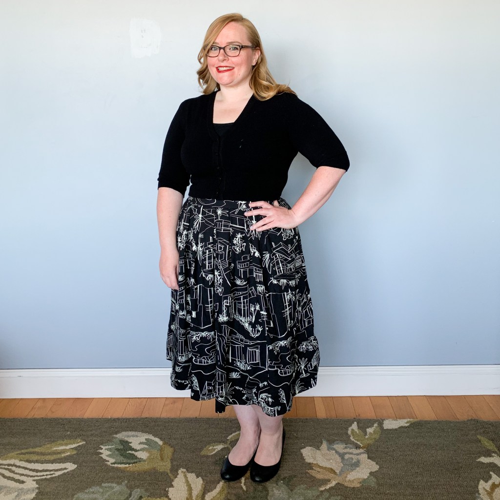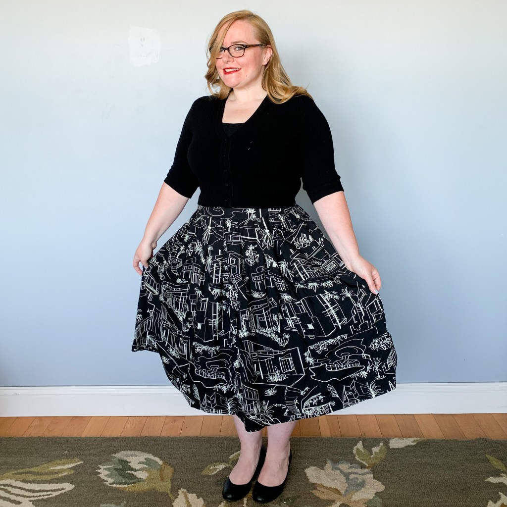 The fabric I used had been sitting in my stash for a LOOONG time. I received it in a Sew Over It fabric club box a while back, but took a really long time to decide what to do with it. When I was packing up for my sister’s, I grabbed it and the Lizzie Skirt pattern on a whim, and they turned out to be a match made in heaven.