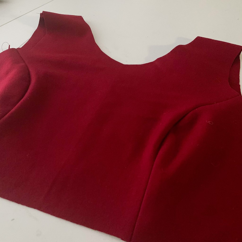 Even with just the bodice done, I was pretty excited about this project. Though I know the holidays are going to be more low-key this year, I knew I had the perfect Christmas dress on my hands here. The color is beautiful and the style of the dress is a classic.