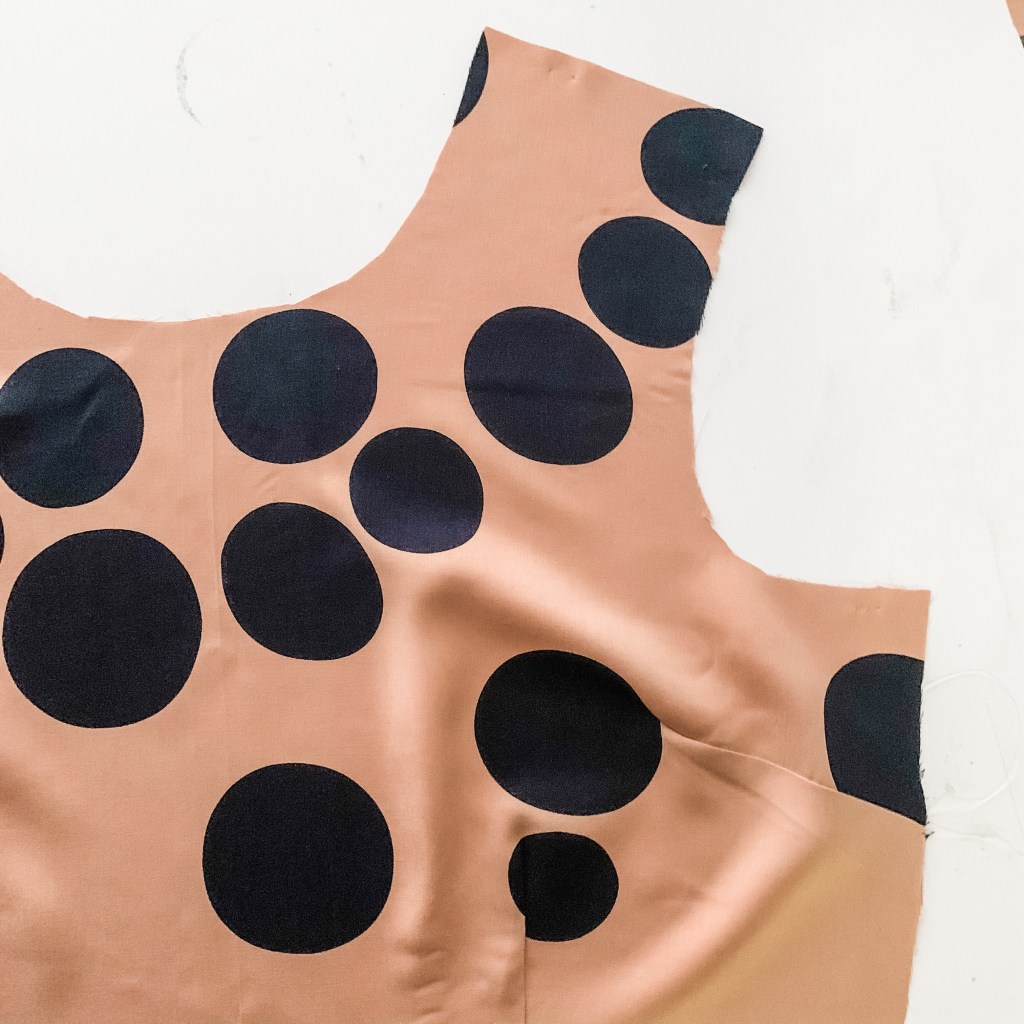 Though I was familiar with the pattern company, this was my first foray into making one of their patterns. I had some fabric from Mind the Maker that I was eager to use, and it seemed a nice match! I was looking for a simple party dress vibe to show off the quirky polka dots on the fabric.