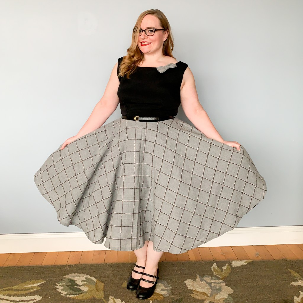 Tuesday was a challenge, as it was all about hats… and I don’t have any! I’ve never been all that into hats, so I participated in spirit by choosing one of my retro-inspired recent makes: the Sew Over It Betty Dress with the checked skirt and the little bow detail. I figured I might as well keep up the Maisel theme, sans hat!