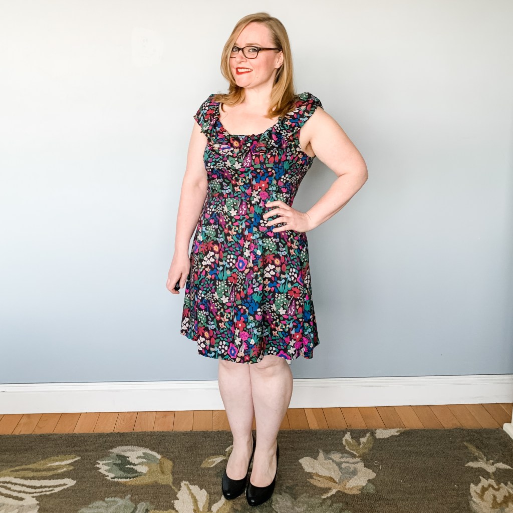 The finished project is an adorable little summer dress that I can’t wait to wear to a brunch! I will admit that it is a tiny bit on the short side for me, compared to what I usually wear, but that’s what bike shorts are for (though I may not even need them… probably depends on how windy it is!).